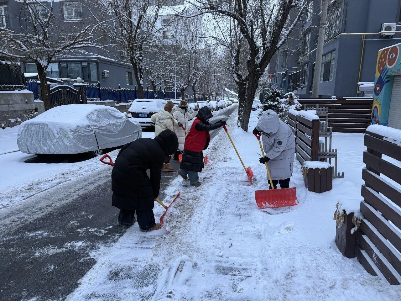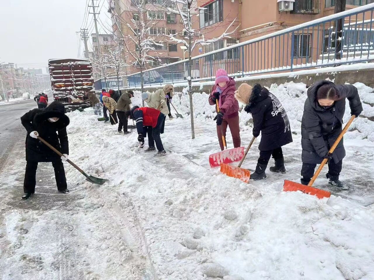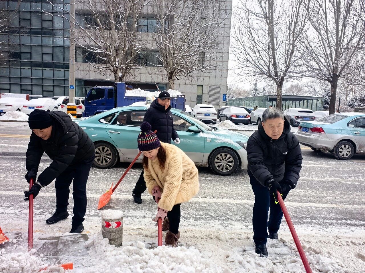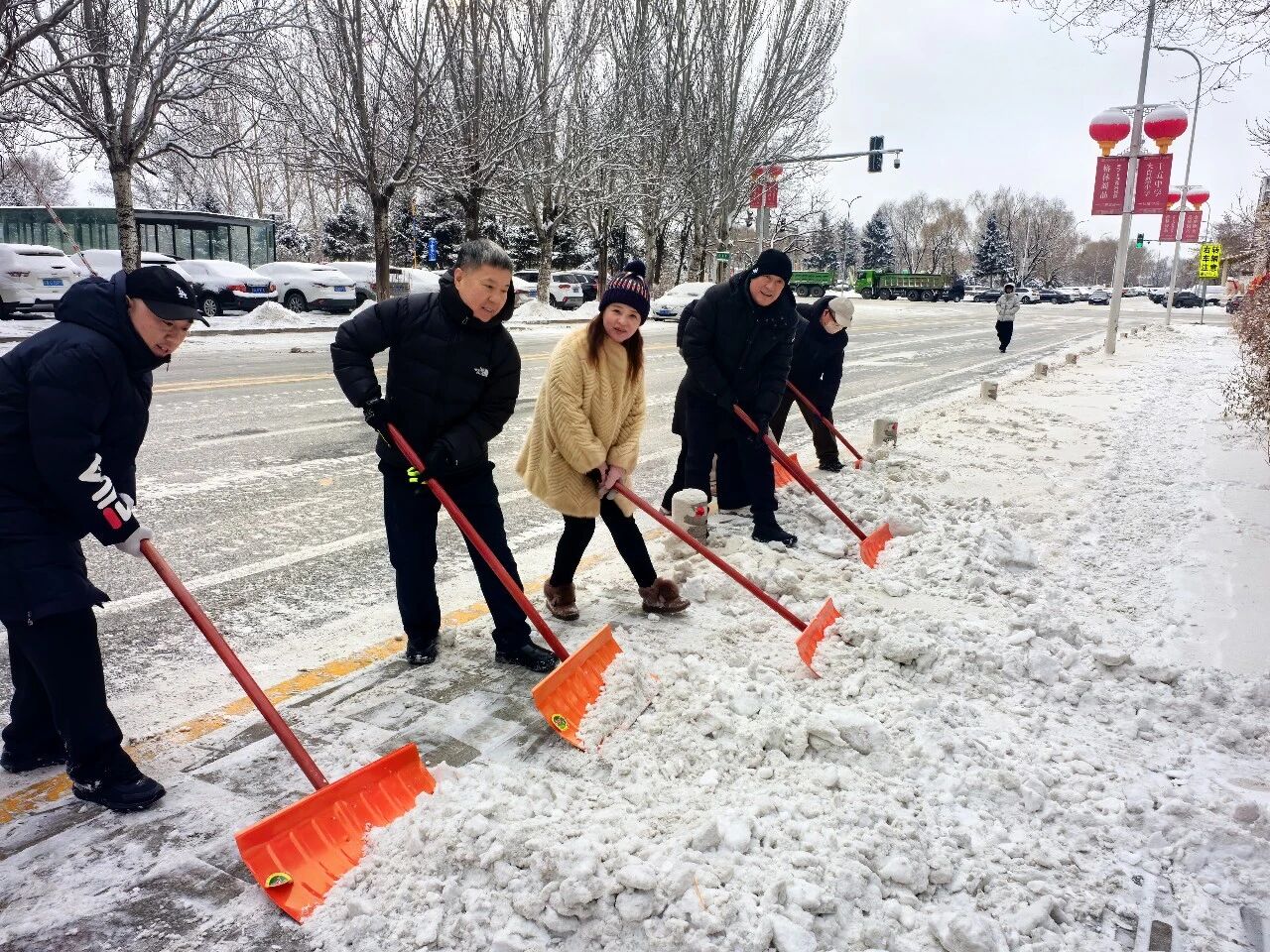 雪后清晨,机关干部下沉一线,社区工作人员全员上阵,带着除雪工具奔赴主次干道、社区出入口、公交站台等重点区域,全力开展除运雪作业。大家分工协作、挥铲扬帚,默契配合清理积雪。作业过程中,不少居民主动加入队伍,邻里携手、干群同心的画面格外暖心。经过合力清扫,一条条通畅的道路逐渐显现,保障了市民的出行安全。