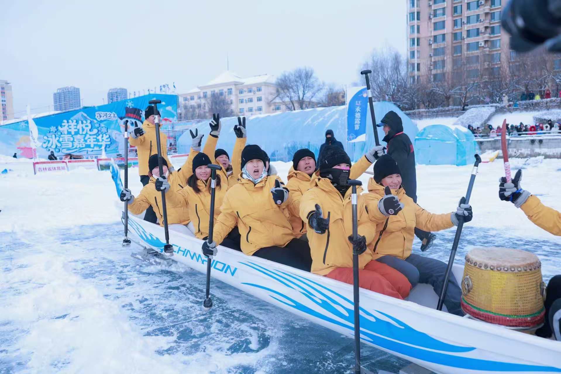 赛道之上,战鼓擂动,龙舟飞驰;河岸两旁,人潮涌动,热情如火。尽管气温骤降,却丝毫无法冷却观众的热情。市民们扶老携幼,早早占据最佳观赛位置,为每一次冲刺呐喊助威。赛事精心策划的“赏冰乐雪嘉年华”同步绽放异彩:热气氤氲的“铁锅炖”摊前排起长龙,地道的关东美食温暖了冬日的严寒;特色市集上,琳琅满目的非遗产品和农特文创,让人领略抚顺的地域文化;冰雪乐园里,孩子们的欢笑与冰雪游玩设施的穿梭,交织成欢乐的乐章。“观精彩赛事、品特色美食、享冰雪乐趣”的一站式体验,让这场赛事超越了体育竞赛本身,成为一场全民参与、共享欢乐的冬季文旅节庆。