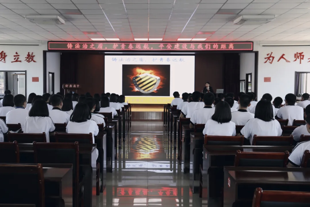 朱春欣庭长既有丰富的审判实践经验,又怀揣着对母校学子的深切关怀。课堂上,她以“九一八事变”的历史记忆开篇,引导同学们从历史中感悟安宁的珍贵,随即切入正题,将宏大的“平安建设”理念转化为贴近校园生活的生动解读——平安是清晨上学的安全路途,是课堂学习的专注氛围,是夜晚归家的宁静时光,而这份“习以为常”的安宁,离不开法律的坚实守护。