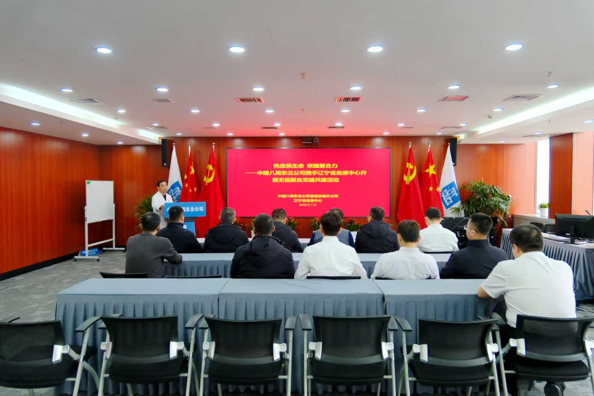 为积极探索党建引领服务社会公益新路径,中建八局东北公司基础设施分公司近日与辽宁省血液中心联合开展“热血筑生命联建聚合力”党建联建协议签订仪式暨无偿献血活动,以实际行动践行初心使命,传递央企温度。辽宁省血液中心相关领导,分公司各部门、各项目职工参加活动。