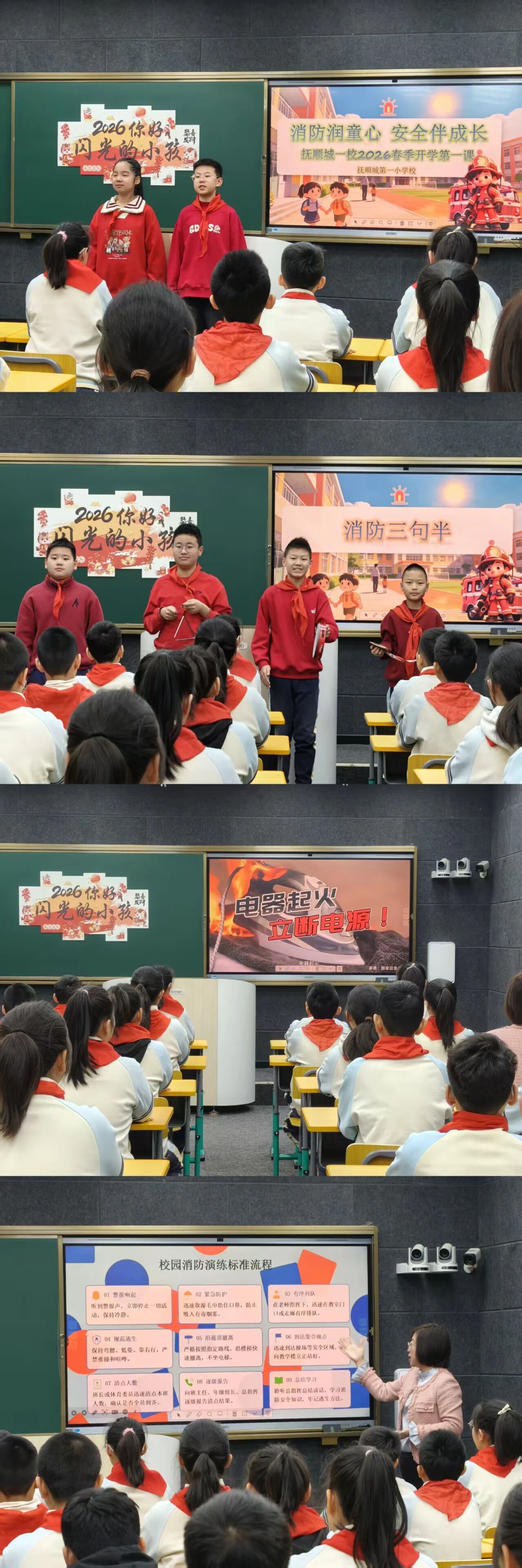 抚顺城第一小学开展消防安全主题讲座,师生共同学习消防演练标准流程、辨识各类消防标志等安全知识,为新学期校园筑牢安全防火墙。