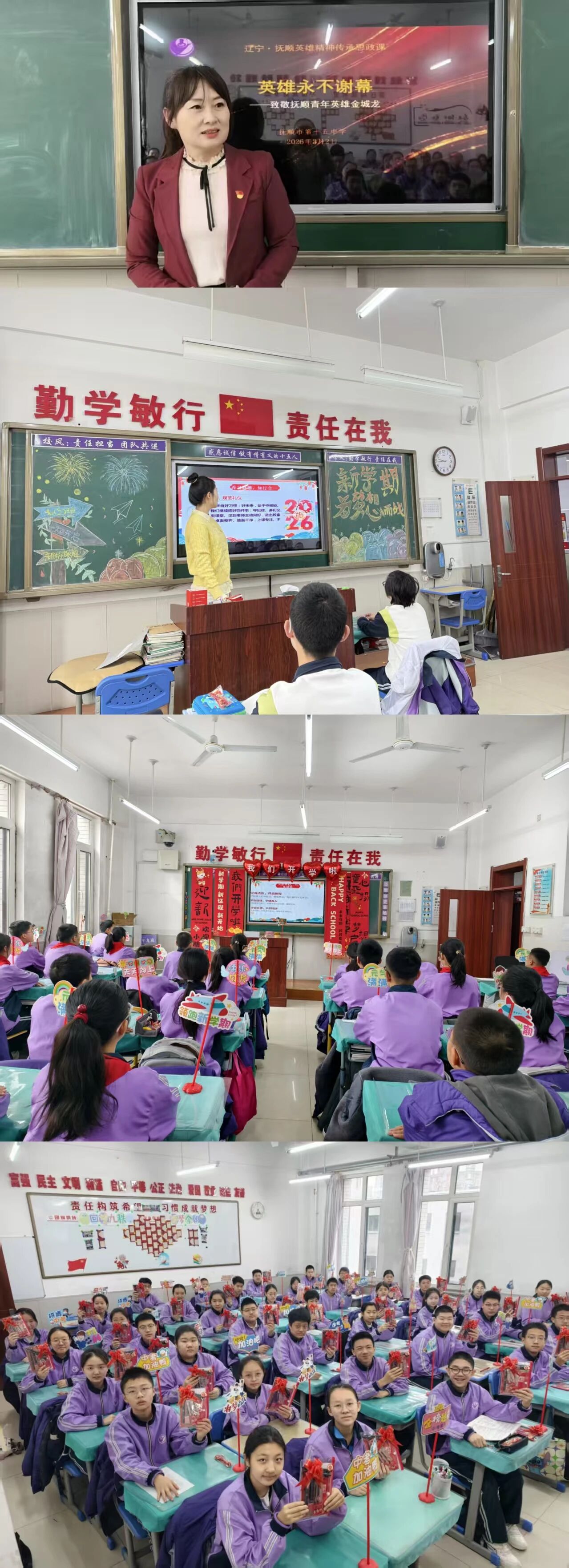 抚顺市第十五中学扎实推进以“英雄永不谢幕”为主题的思政课改革创新工作。通过教师集体备课,深挖辽宁、抚顺本地英雄事迹,运用案例分析、小组讨论、情景模拟等形式,让思政课堂鲜活有力,切实提升育人实效。