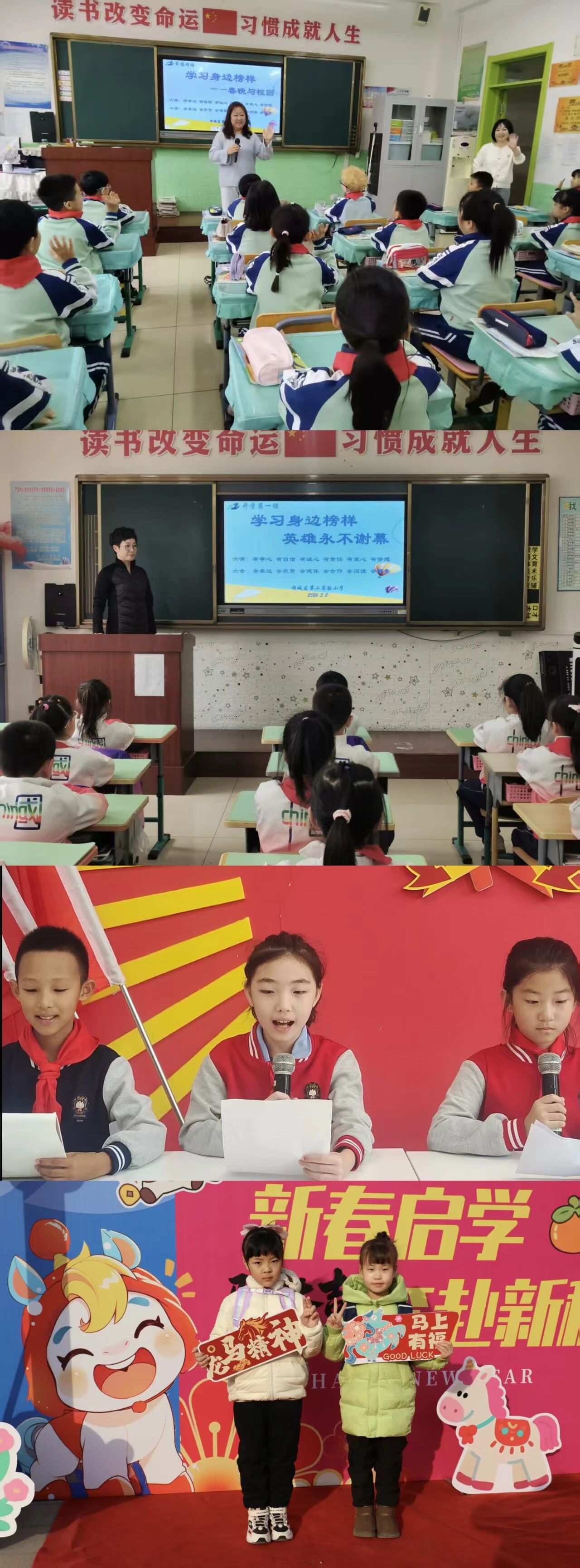 将军第二小学以“英雄永不谢幕”为主题开展开学第一课,各班级通过讲述英雄故事、观看红色视频等方式,引导学生感悟英雄精神、赓续红色血脉。