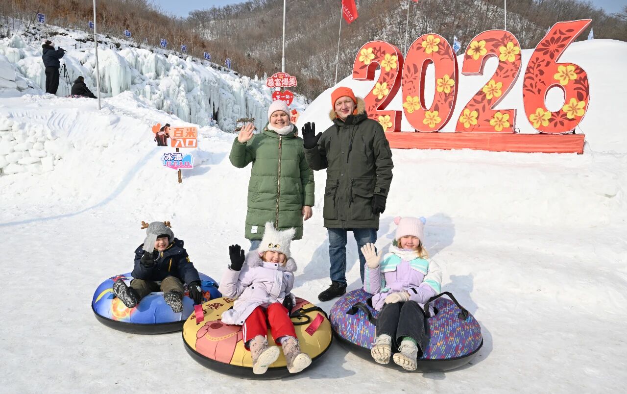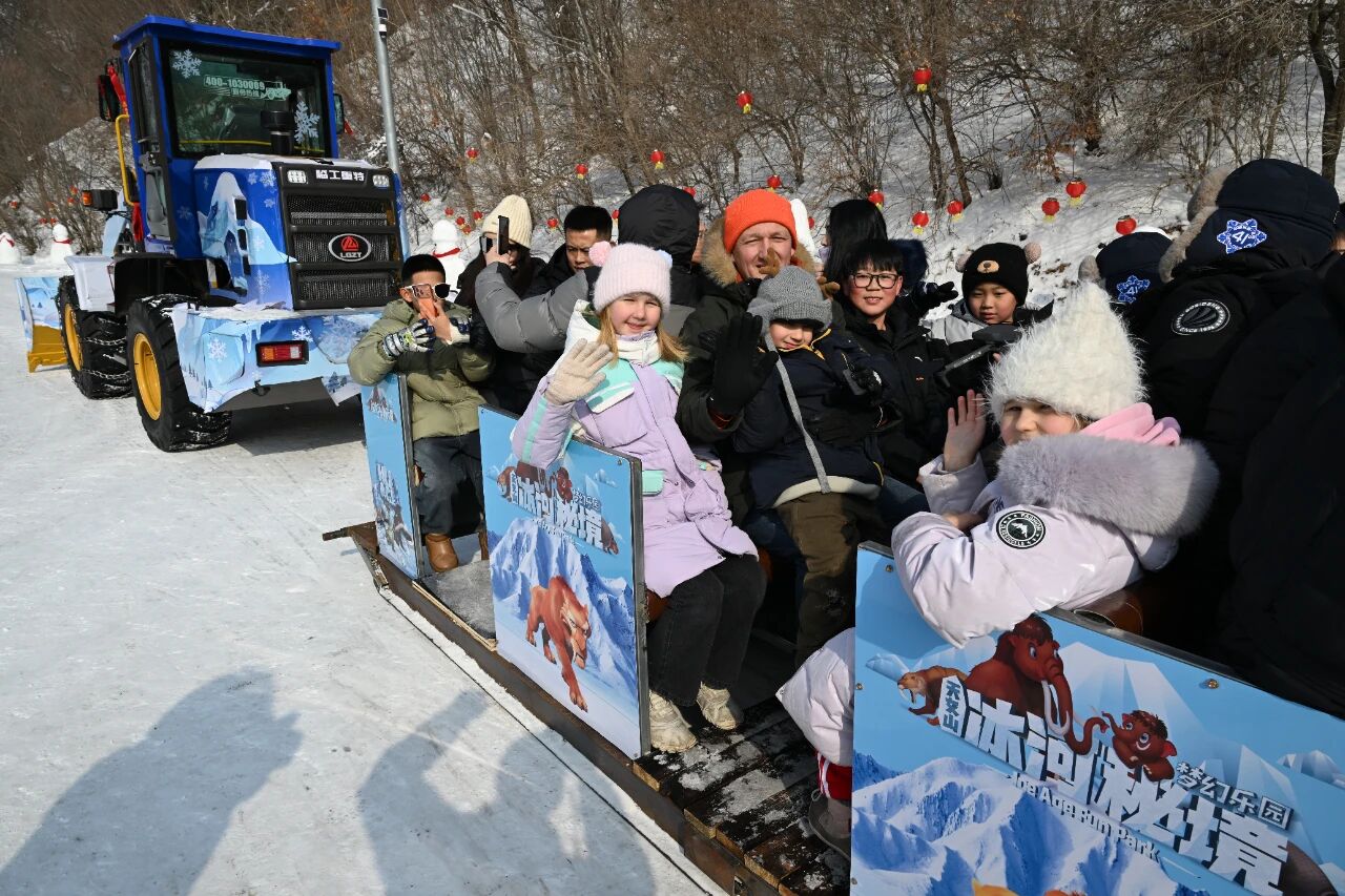 “我进来就看到这里有猛犸象,我想去看看!”“我想去滑雪圈!”“腊八粥和铁锅炖好吃吗?”刚一到景区,尤莉娅的三个孩子就被天女山打造的冰河主题场景以及特色美食吸引,用熟练的中文与记者交流,表达畅玩想法。