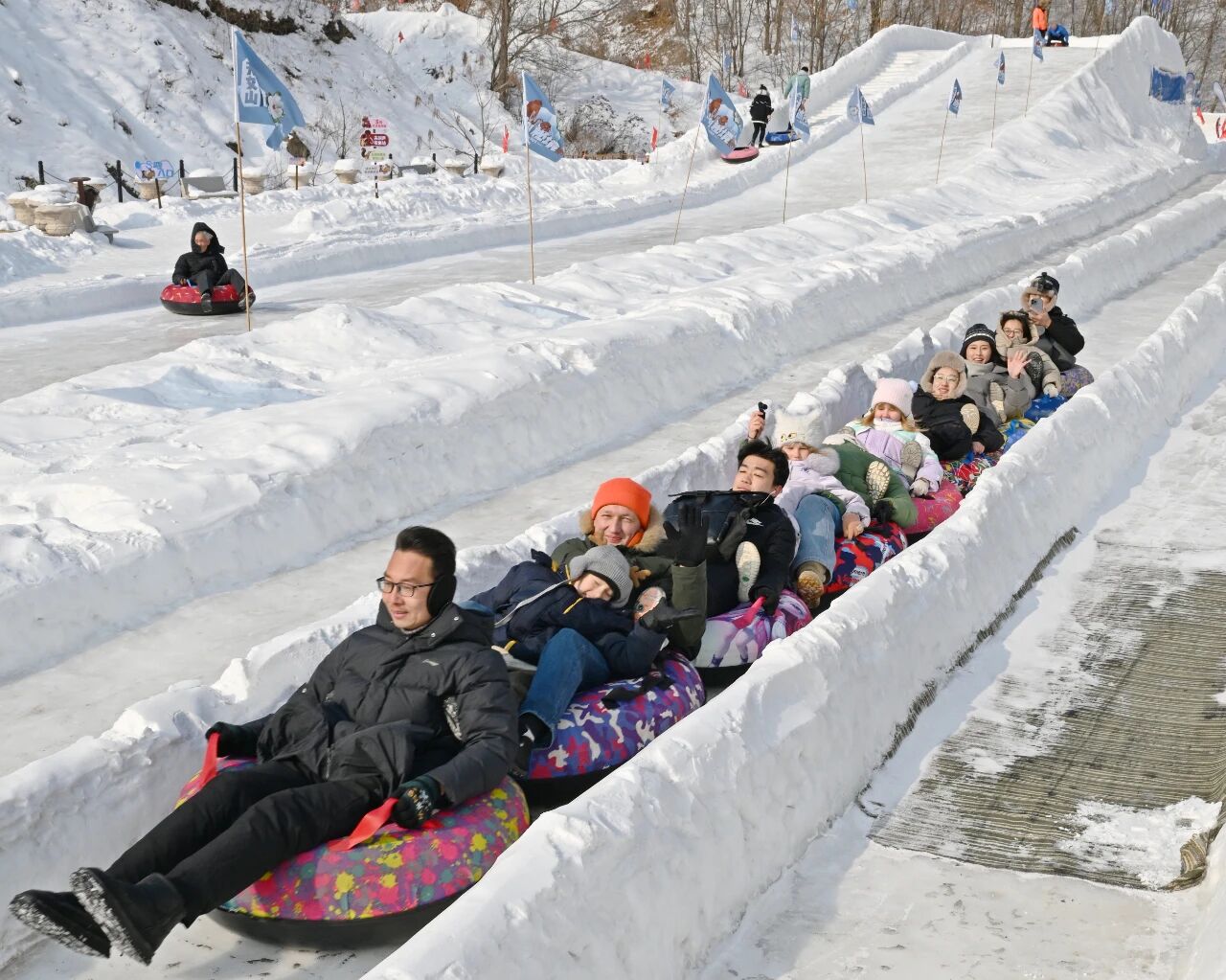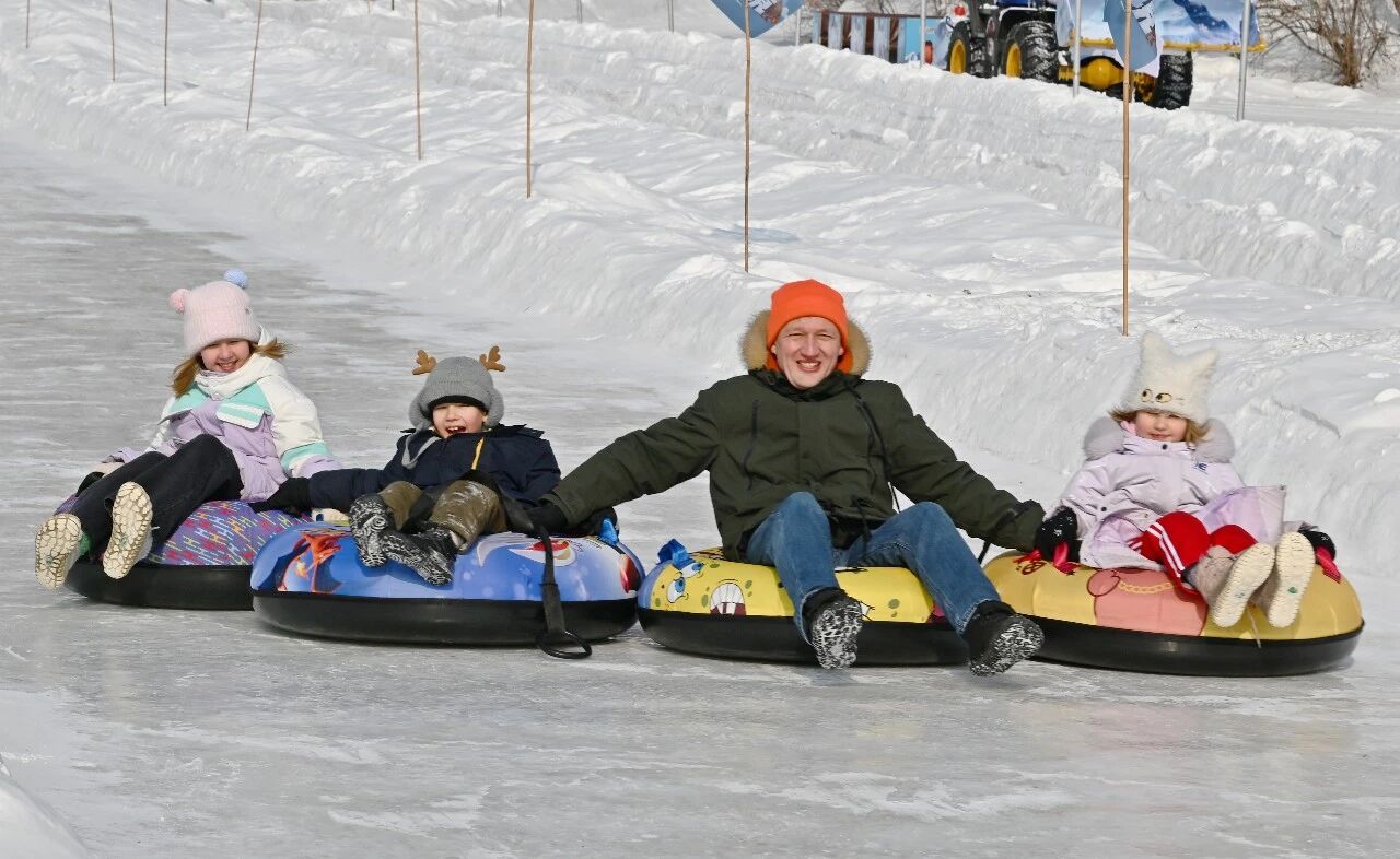 100米雪圈道是他们体验的第一个项目。尤莉娅的丈夫尤金与三个孩子手拉手坐着雪圈开心地往下滑,发出欢乐的尖叫声。“好玩!太刺激了!有机会我还来玩!”12岁的大女儿达莎到达终点后,兴奋地拉着雪圈往坡上走,打算循环体验。
